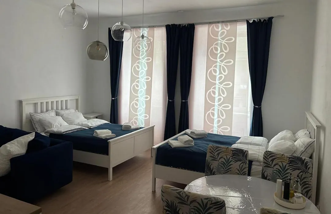 To ensure your comfort, a separate toilet and a shower are provided at the apartment. Moreover, there are hairdryers, bath sheets, and towels as well.